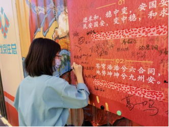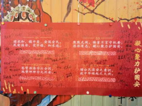 線下主題標(biāo)語(yǔ)的投票環(huán)節(jié)是本次活動(dòng)的亮點(diǎn)和創(chuàng)新點(diǎn),4月15日下午17:00,宿舍樓外、校道旁彩繪墻處人頭攢動(dòng),熱鬧非凡。在工作人員的指引下,同學(xué)們領(lǐng)取紅旗貼紙,為自己心儀的標(biāo)語(yǔ)作品投上寶貴一票,在展板上留言簽名,還抽取了精美小禮品。大家興致勃勃、樂(lè)在其中,在快樂(lè)的氛圍里感受國(guó)家安全的重要性,樹(shù)立維護(hù)國(guó)家安全的意識(shí)。以下為活動(dòng)精彩瞬間: