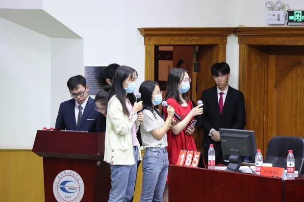 第一環節結束,錢韻如、肖郅宇、王思溦、蘇星宇四名同學為我們帶來的詩朗誦《我的祖國》,不僅緩解了選手們緊張的心情,也在中國共產黨百年華誕來臨之際表達了對黨的敬愛之情。